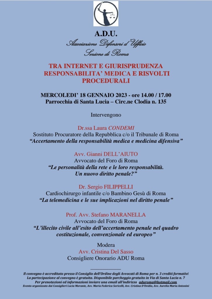 L’Associazione Difensori d’Ufficio di Roma – ADU Roma ha organizzato un Convegno dal titolo: