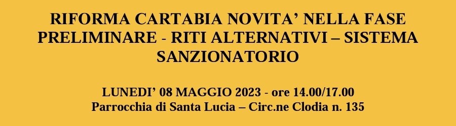 L’Associazione Difensori d’Ufficio di Roma – ADU Roma ha organizzato un Convegno dal titolo: “Riforma Cartabia, novità nella fase preliminare – riti alternativi – sistema sanzionatorio” Relatori: avv. Stefano Galeani, Consigliere dell’Ordine degli Avvocati di Roma che introdurrà l’argomento; dr.ssa Claudia Terracina Sostituto Procuratore c/o la Procura del Tribunale Penale di Roma che tratterà “Le… Read More Convegno ADU Roma dell’8.05.2023