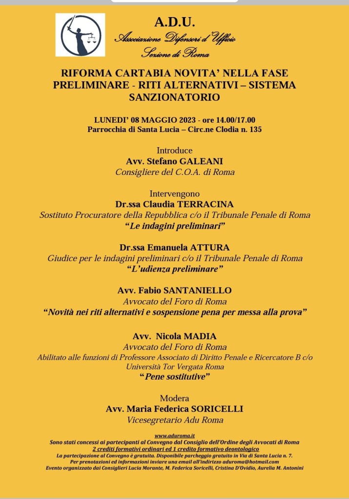 L’Associazione Difensori d’Ufficio di Roma – ADU Roma ha organizzato un Convegno dal titolo:
