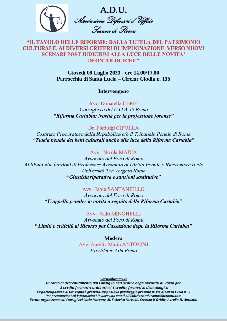 L’Associazione Difensori d’Ufficio di Roma – ADU Roma ha organizzato un Convegno dal titolo: