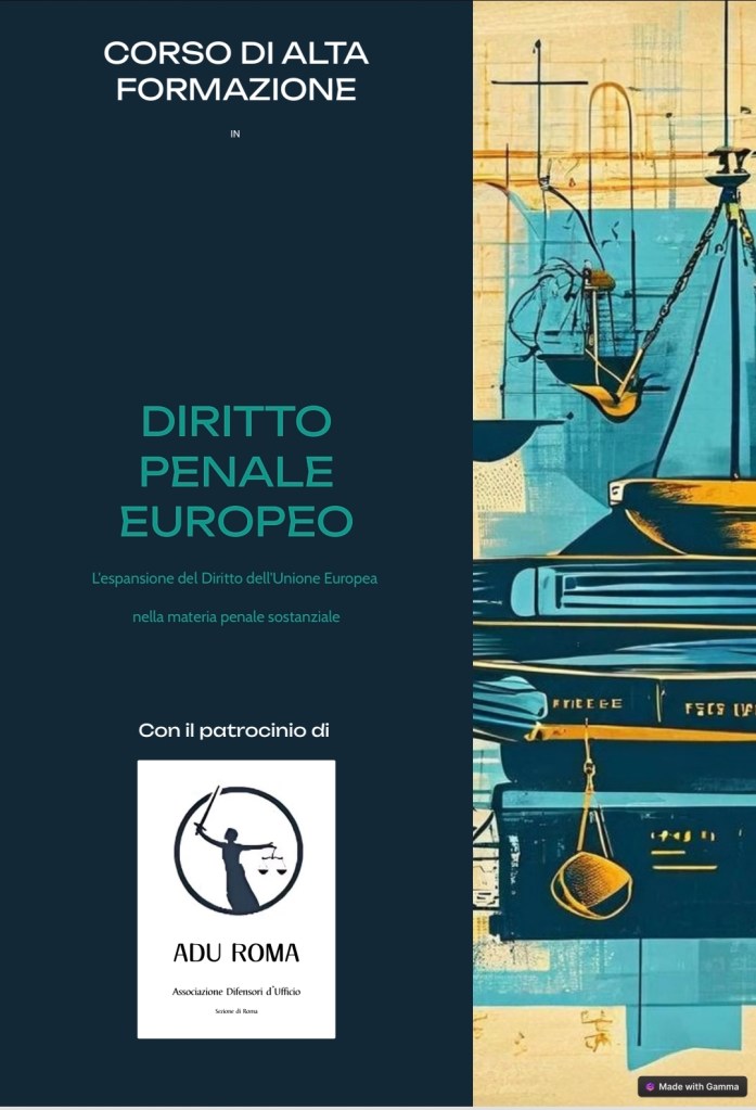 L’ADU è lieta di promuovere il corso di Alta Formazione in Diritto Penale Europeo.
