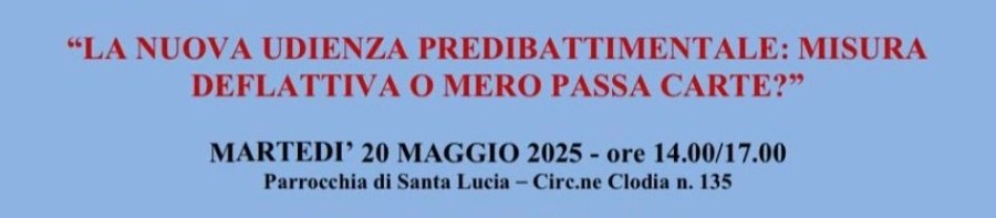 L’Associazione Difensori d’Ufficio di Roma – ADU Roma ha organizzato un Convegno dal titolo: “La nuova udienza predibattimentale: misura deflattiva o mero passa carte?” Relatori: Avv. Cristiana Arditi di Castelvetere, Consigliera dell’Ordine degli Avvocati di Roma che introdurrà con l’argomento di deontologia “I doveri dell’avvocato nell’ambito del processo”; Dr. Nicola Di Grazia, Magistrato Presidente del… Read More La nuova udienza predibattimentale: misura deflattiva o mero passa carte?